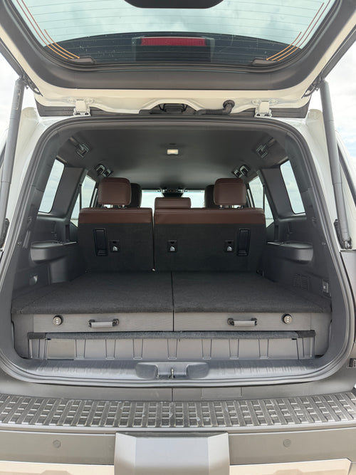 MODULR products are intended solely for cargo storage and organization. They are not safety devices, are not crash-rated, and are not designed to protect occupants or prevent injury. Loads must be evenly distributed and remain within recommended weight limits. Standing, sitting, or sleeping on the system is prohibited. Improper installation, misuse, or overloading may result in damage, failure, or injury and voids the warranty. DIY installation is performed at the customer’s discretion, and all responsibility for safe installation and use rests with the user.